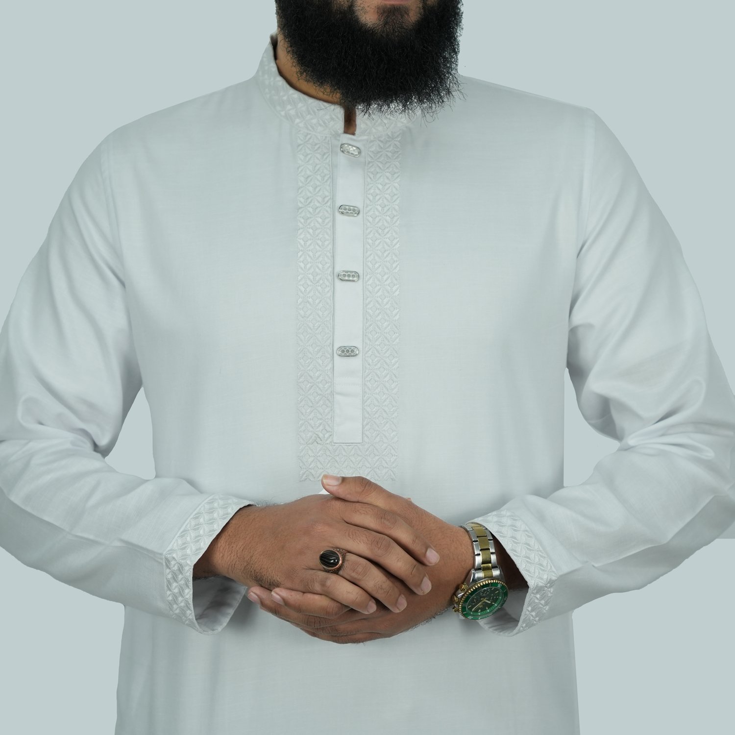 Upgrade your wardrobe with the Cotton Panjabi – 107, designed for those who value both style and comfort. Made from high-quality cotton, it offers a soft, breathable feel, making it ideal for warm climates. The premium snap button closure, contrast cuff sleeves, and refined embroidery detailing enhance its classic appeal. Whether for celebrations or casual gatherings, this Panjabi ensures a timeless, polished look.