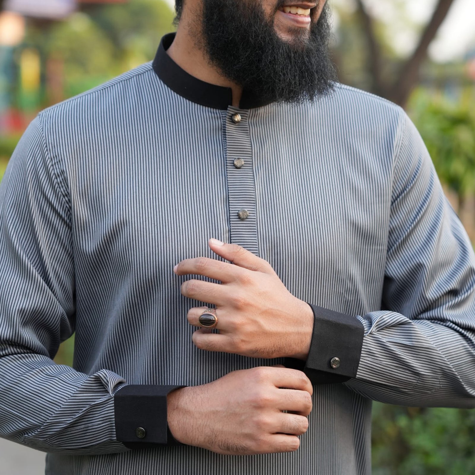 Step into sophistication with our Striped Dobby Cotton Panjabi, designed for those who appreciate both style and comfort. Made from high-quality striped cotton, this Panjabi ensures a polished look while keeping you cool in warm climates. The contrast cuff sleeves, premium snap button closure, and fine embroidery detailing add a touch of luxury to every wear.